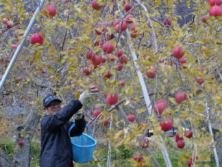 小雪の中で。12月まで収穫作業が続きます。